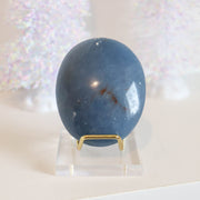 Angelite is a blue variety of anhydrite, a calcium sulfate mineral, Mohs 3 - 3.5.