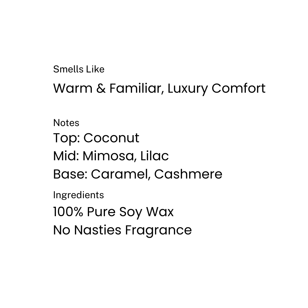Rich Cashmere & Mimosa wraps your space in a sense of calm sophistication. Delicate mimosa blossoms bring a light, airy floral note, balanced by the smooth warmth of cashmere that feels cozy, comforting, and indulgent.
