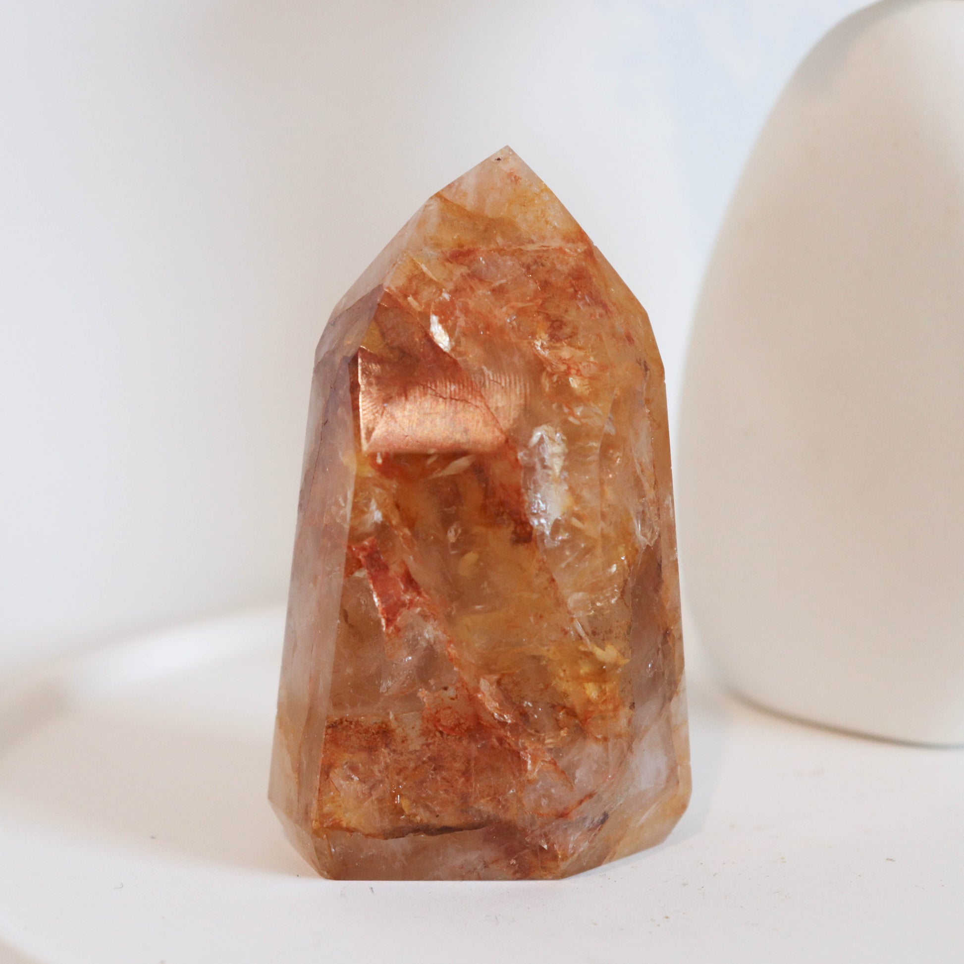 Golden Healer is a variety of quartz infused with iron oxide, giving it a golden to amber hue, Mohs 7