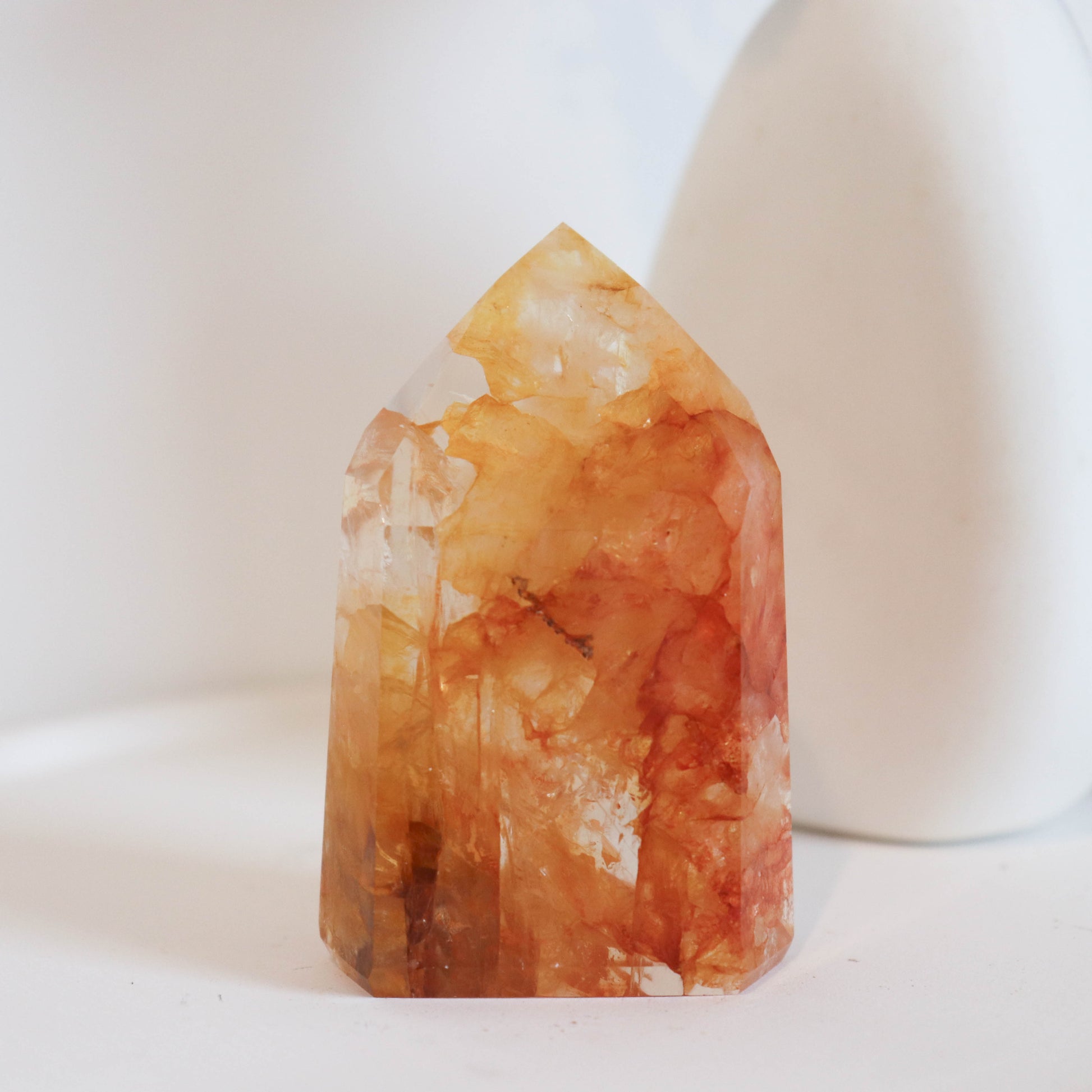 Golden Healer is a variety of quartz infused with iron oxide, giving it a golden to amber hue, Mohs 7