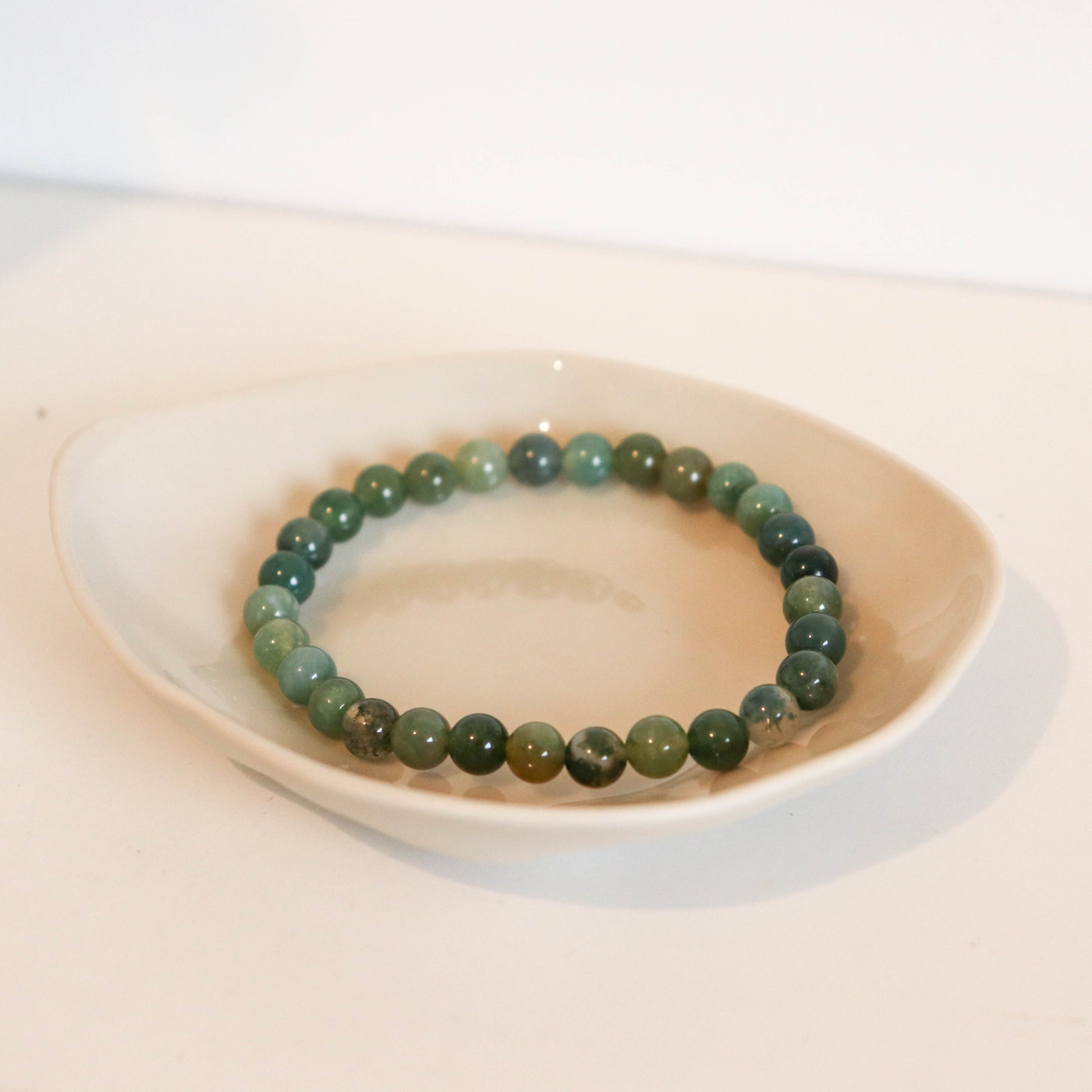 Moss Agate is a stabilising stone that promotes emotional balance and inner peace. It’s especially helpful during times of change, encouraging new beginnings and personal growth. Often used to relieve stress and anxiety, it gently grounds you while opening the heart to healing and renewal.