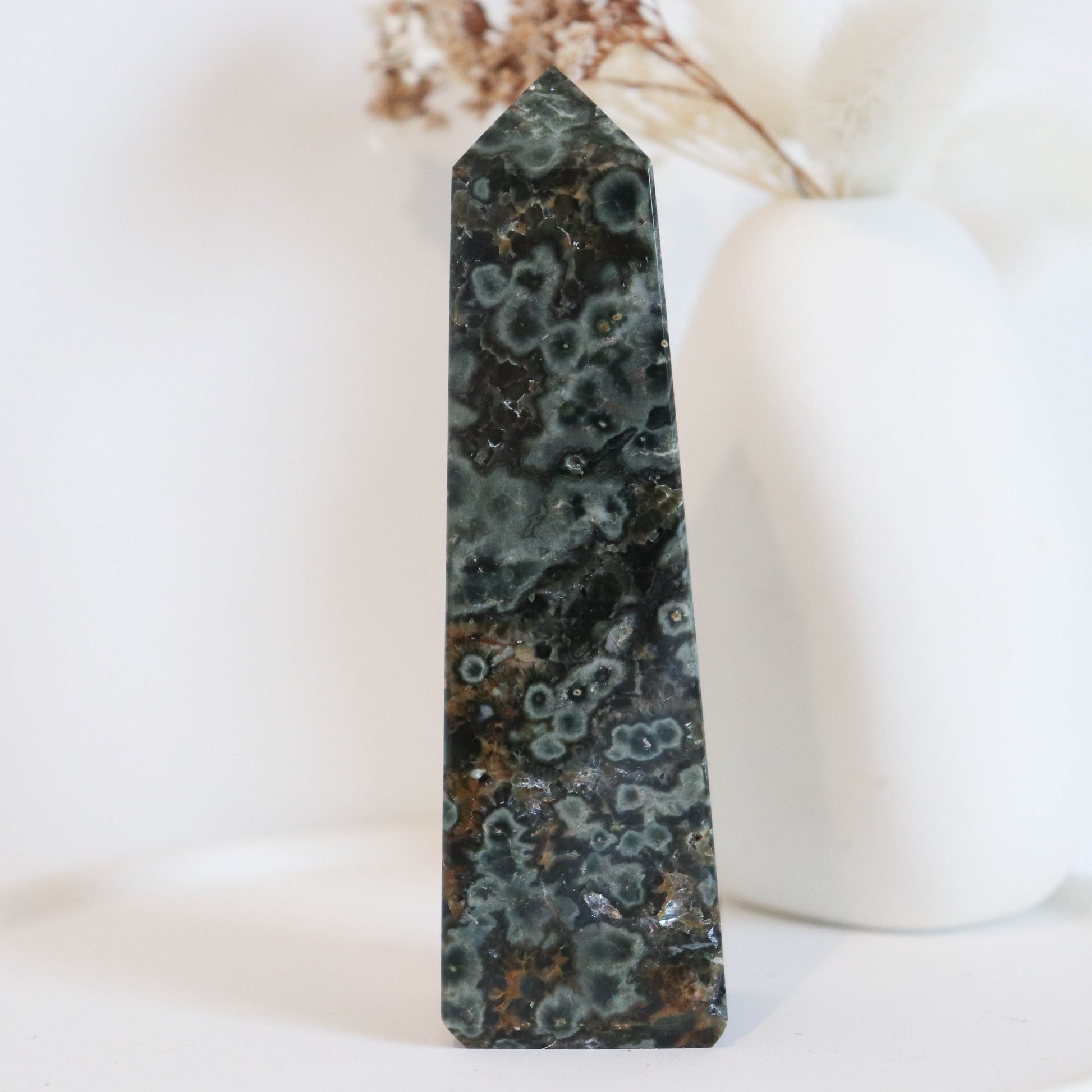 Ocean Jasper is a nurturing stone that brings joy, optimism, and emotional healing. It helps to release stress, promote self-love, and encourage a positive outlook on life. This stone supports emotional balance and spiritual renewal, making it ideal for those seeking to reconnect with themselves and the natural flow of life.