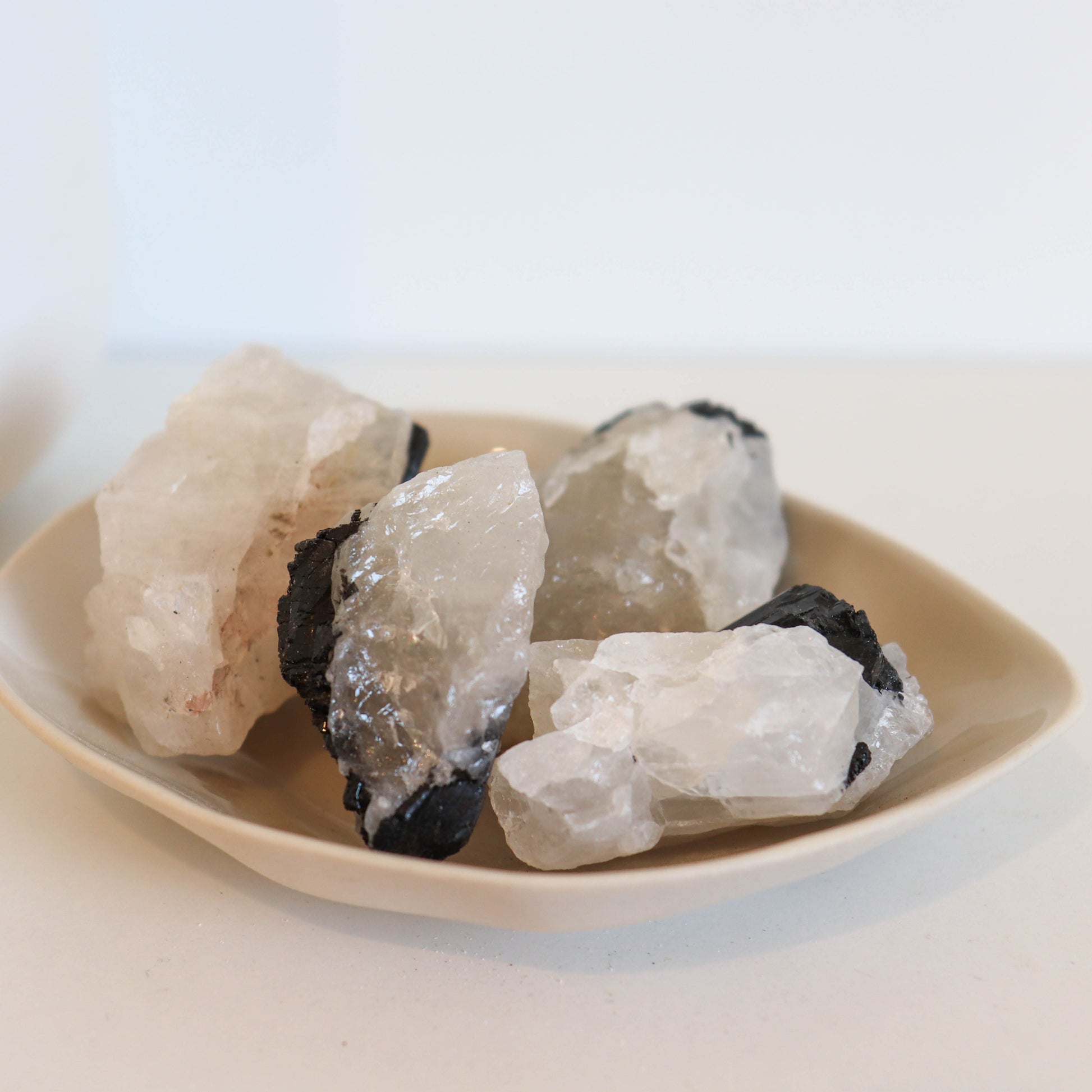 Tourmalinated Quartz combines the protective energies of black tourmaline with the healing power of clear quartz. This stone is known for its ability to dispel negative energy, cleanse the aura, and provide protection from environmental stress. It enhances mental clarity, spiritual growth, and helps to ground and stabilize energy, promoting emotional balance and resilience.